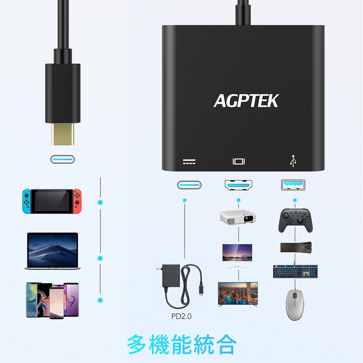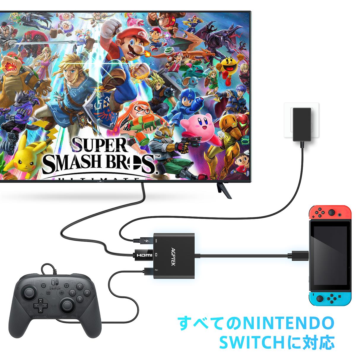 注意:Switchに接続するときは、AGPTEKのSwitch電源アダプタHYC-KM1503または元のSwitchの電源アダプタから電源を供給する必要があります。