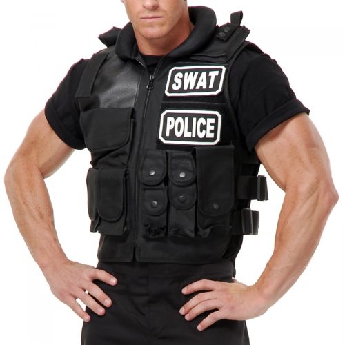 SWAT Team Vest Costume Accessory Adult Police Cop Halloween Fancy Dress