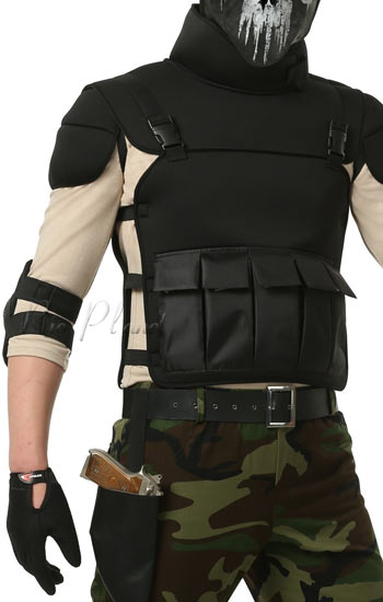 ■商品名 スワット アダルト スカル ミリタリー コマンダーswat ADULT SKULL MILITARY MAN COSTUME ■カラー シャツ、パンツ、ベスト、フード、マスク、ベルト、ホルスター、ショルダーパット、エルボーパット、ニーパット ※こちらの商品に拳銃・ブーツは含まれておりません。